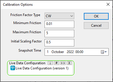 Allows additional options to be set when a calibration run is selected in the Schedule Hydraulic Run View.