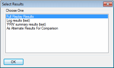 opening a completed simulation. The ways in which the simulation can be opened, such as replay or log results, are listed.