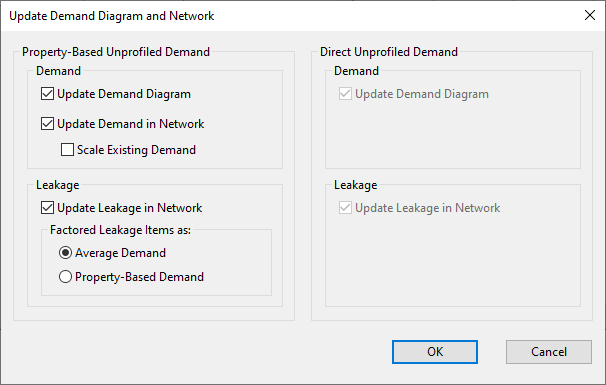 The Update Demand Diagram and Network dialog is used to update Demand Diagram category profiles and demand assigned to nodes in the network from Demand Area Analysis.