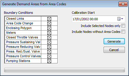 - Generate polygons generates polygons for a collection of contiguous Demand Areas based on Boundary Conditions. The polygons for each area enclose all of the nodes, links and allocated customer points in that area. The polygon boundaries for adjacent areas coincide. The polygons created can either be enclosed by a bounding polygon or else the network extents will be taken as the outer limits to the polygons.