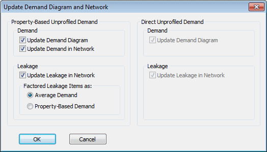 updates the calculated profile in the Demand Diagram, and/or demand and leakage in the network. See Updating the Demand Diagram and Network below for further details.