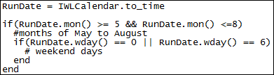 If there is no calendar defined (no Switch Controller associated with the Baseline), a default calendar is used during script execution. The default calendar has no holidays and has a weekend period of 'Saturday and Sunday'.