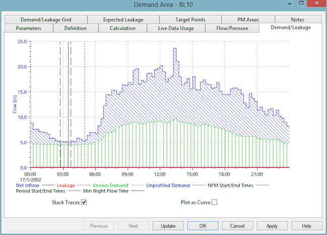 The Demand/Leakage Page is used to view the Flow Balance results as a graph.