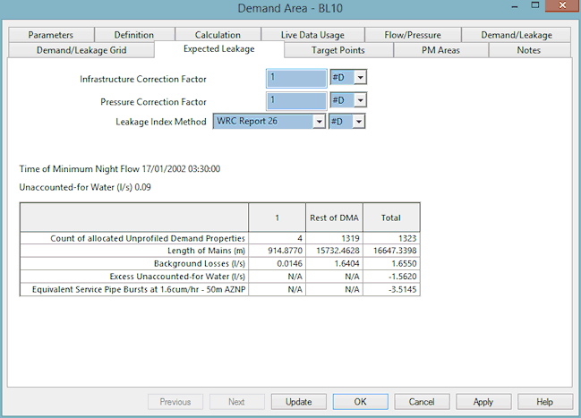 There are two Leakage Index methods available: WRC Report 26 (default) and 1.5 Power Law.