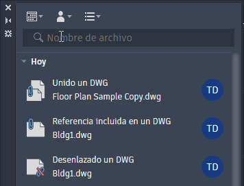 La información de actividad puede incluir el momento en que un archivo DWG se ha enlazado como una refX o se ha desenlazado y cuándo se ha unido la refX.