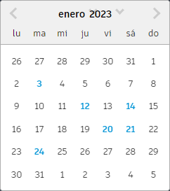 Personalizado: muestra un calendario para seleccionar dos o más fechas. Las fechas especificadas se resaltan en azul.