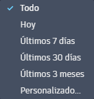 Últimos 30 días: muestra los eventos de los 30 días naturales anteriores a la fecha actual.