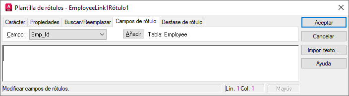 Añade al rótulo el campo seleccionado en la lista Campo.