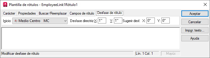 Define los desfases de las coordenadas X e Y del punto de inserción del rótulo y, si se trata de un rótulo enlazado, también de su objeto directriz asociado.