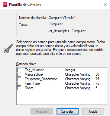 Atención: Seleccionar un gran número de campos clave pueden afectar negativamente al rendimiento de la opción Selección de vínculos y de otras operaciones de conectividad.