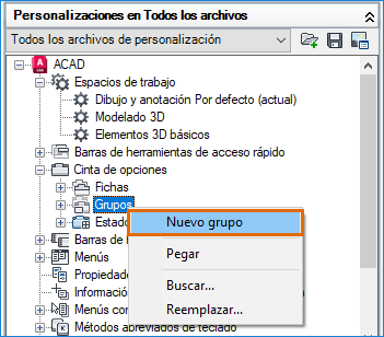 En este artículo, mostraremos cómo crear un grupo personalizado de la cinta de opciones, asignarle comandos y añadirlo a una nueva ficha de la cinta de opciones mediante el editor Interfaz de usuario personalizada (IUP).