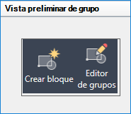 Debajo de Mostrar, en el cuadro de texto Nombre, escriba Crear bloque y pulse Intro. Puede observar los cambios de propiedades en el panel Vista preliminar de grupo.