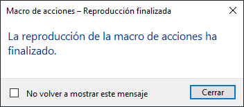 En el cuadro de diálogo Macro de acciones - Reproducción finalizada, haga clic en Cerrar.