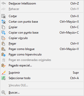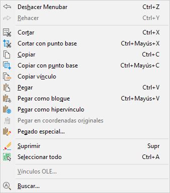La forma en que se muestra un elemento de menú indica su disponibilidad en el programa.