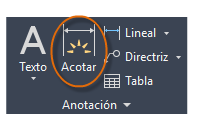 Puede crear cotas horizontales, verticales, alineadas y radiales con el comando ACOTA. El tipo de cota depende del objeto que se seleccione y la dirección en la que se arrastre la línea de cota.