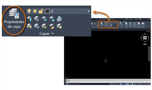 Para ver cómo se organiza un dibujo, utilice el comando CAPA para abrir el Administrador de propiedades de capas. Puede introducir CAPA o CA en la ventana de comandos, o bien hacer clic en la herramienta Propiedades de capa en la cinta de opciones.