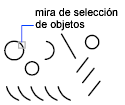Un pequeño cuadro, denominado mira de selección de objetos o caja de selección, sustituye al cursor en cruz del cursor gráfico.