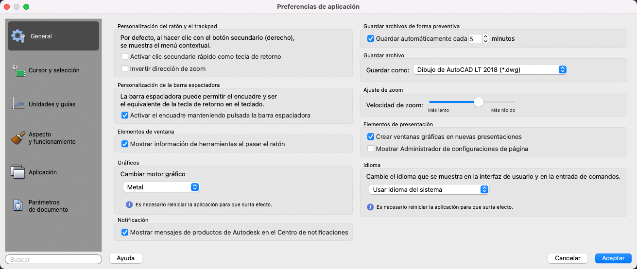 Minutos entre guardados: cuando Guardado automático está activado, indica con qué frecuencia se guarda el dibujo. (Variable de sistema SAVETIME).