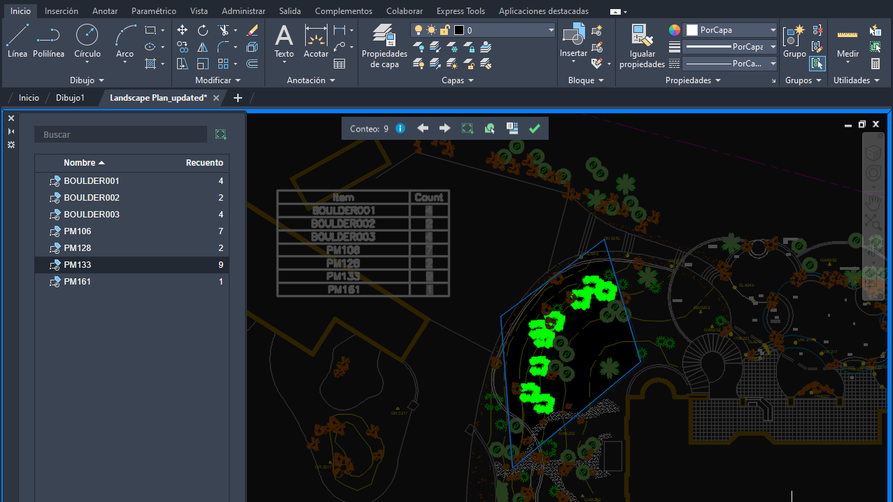 Ahora puede contar los ejemplares de un objeto o bloques dentro de un área especificada.