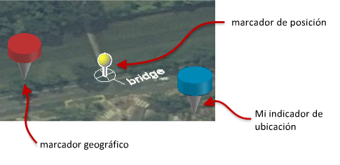 La información de ubicación geográfica de un archivo de dibujo se crea en torno a una entidad denominada marcador geográfico. El marcador geográfico señala a un punto de referencia del espacio modelo que se corresponde con una ubicación en la superficie de la Tierra con una latitud y longitud conocidas. El programa captura también la dirección del norte en esta ubicación. En función de esta información, el programa puede deducir las coordenadas geográficas de todos los demás puntos del archivo de dibujo.