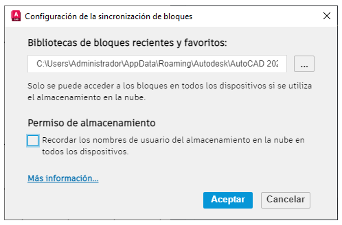 Controla el permiso para recordar el nombre de usuario del almacenamiento en la nube en todos los dispositivos. Si se selecciona esta opción, se ofrece una experiencia más personalizada al acceder a los bloques recientes y favoritos en diferentes dispositivos.