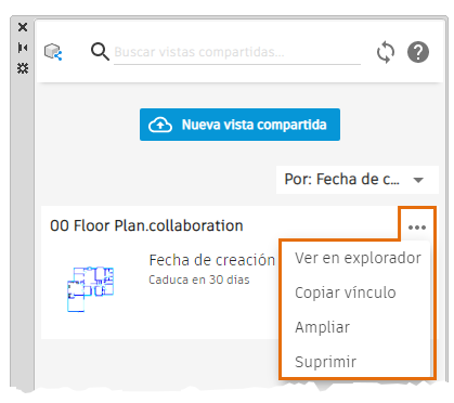 Muestra las vistas compartidas en el orden especificado: Fecha de creación, Título o Fecha de caducidad.