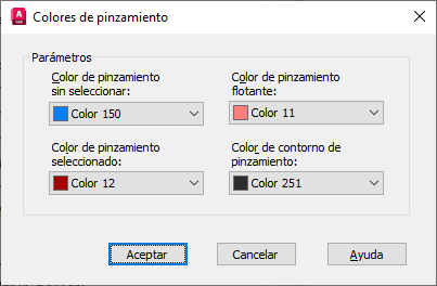 Controla el color del contorno de los pinzamientos. (Variable de sistema GRIPCONTOUR)