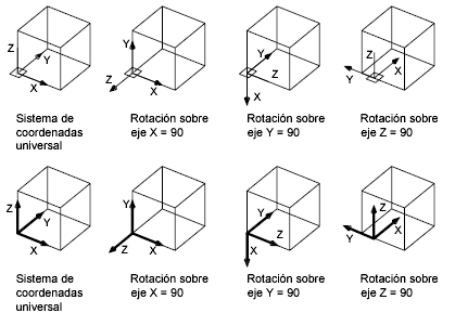 Se puede definir cualquier SCP especificando un origen y una o más rotaciones alrededor de los ejes X, Y o Z.