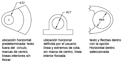Se pueden crear varios estilos diferentes de cotas de diámetro, tal como se muestra en las ilustraciones.