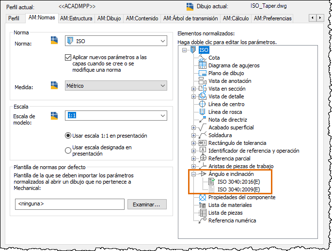 En el conjunto de herramientas AutoCAD Mechanical 2024, al abrir un dibujo heredado, la norma por defecto se cambia a la revisión de la norma antigua. Puede cambiar la revisión de la norma en el cuadro de diálogo Opciones.