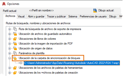 En este caso, puede cambiar la ubicación de la carpeta de bloques recientes en la ficha Archivos del cuadro de diálogo Opciones y especificar una ubicación de almacenamiento en la nube para sincronizar los bloques.