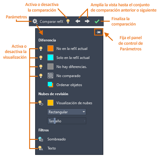 XCOMPARECOLORMODE: cambia el efecto visual de los objetos del dibujo principal durante una comparación de refX.