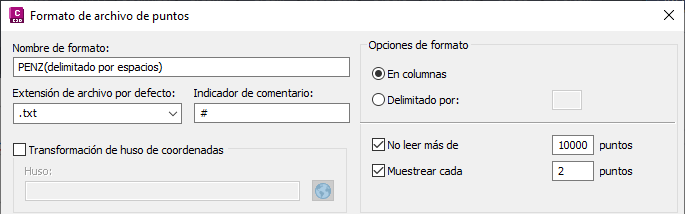 Figura 1: parámetros para el filtrado del archivo de puntos