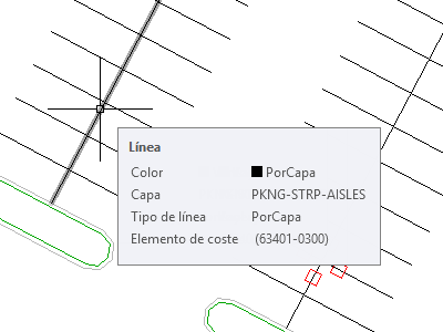 En el dibujo, se seleccionan todas las líneas de calada del aparcamiento.