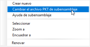 - Se ha añadido la capacidad de cambiar los archivos PKT de subensamblaje. Haga clic con el botón derecho en un subensamblaje del árbol del prospector y seleccione Cambiar subensamblaje para seleccionar un archivo PKT diferente. Puede seleccionar una versión diferente del mismo archivo PKT o un archivo PKT diferente con un nombre de clase diferente.