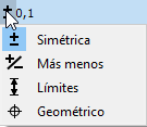 Para cambiar el tipo, seleccione el icono que indica el tipo y, a continuación, seleccione el tipo deseado de la lista desplegable. El tipo por defecto ± Simétrico.