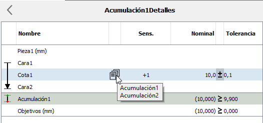 Utilice este flujo de trabajo para realizar cambios en la definición de la tolerancia geométrica. Puede cambiar el valor de tolerancia directamente en la tabla de detalles de acumulación.