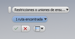Si el ensamblaje contiene información válida de restricciones o uniones, la barra de herramientas pequeña se establece por defecto en el selector de Uniones o restricciones de ensamblaje y se puede seleccionar una ruta de restricción o unión para definir el contorno de acumulación.