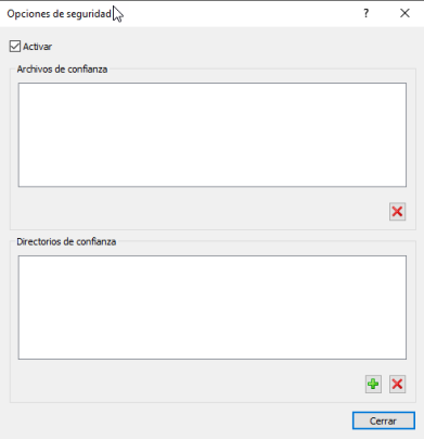 Directorios de confianza — Puede añadir directorios de confianza a esta lista. Los archivos que se encuentran en este directorio se consideran seguros y no se comprueban en busca de comandos potencialmente perjudiciales.