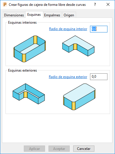 Radio de esquina interior — Introduzca un valor para especificar el radio de empalme para las esquinas internas de la figura.