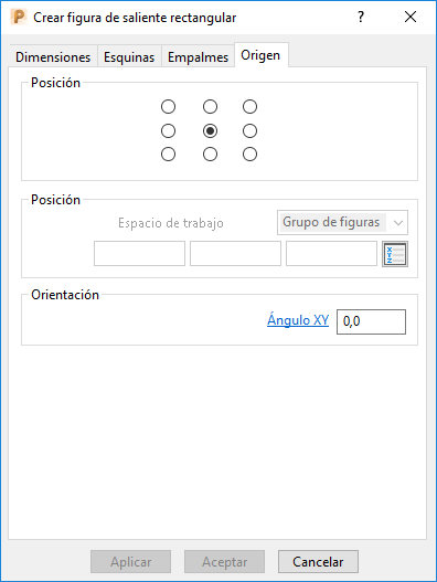 Posición — Seleccione un Espacio de trabajo e introduzca las coordenadas de la figura para posicionarla con respecto al espacio de trabajo seleccionado.