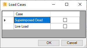 - En el cuadro de diálogo Casos de carga, seleccione los casos disponibles.