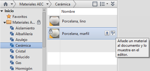 - En la lista de materiales de la biblioteca, haga clic en un material y, a continuación, haga clic en el botón Añadir-Editar
