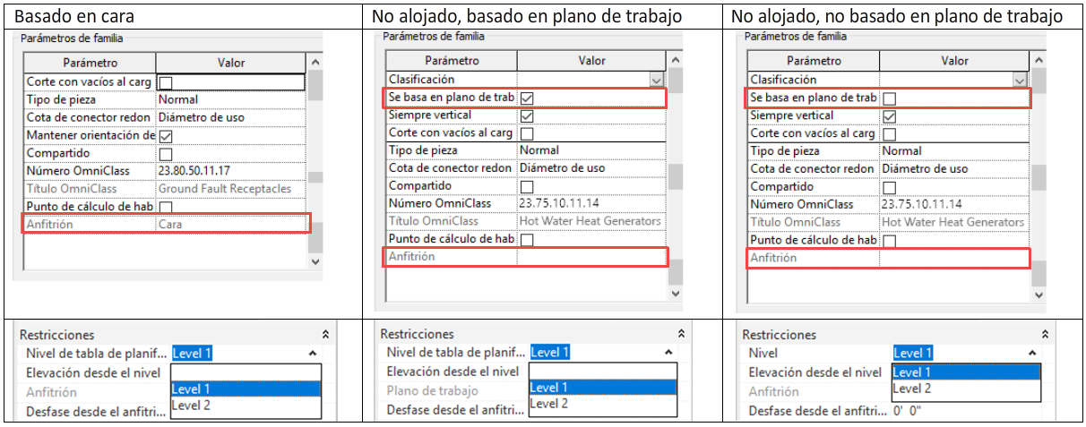 La capacidad de editar el parámetro Elevación desde el nivel depende de cómo se coloque un elemento.
