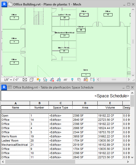Crear una tabla de planificación de espacios es lo mismo que crear cualquier tipo de tabla de planificación en Revit.