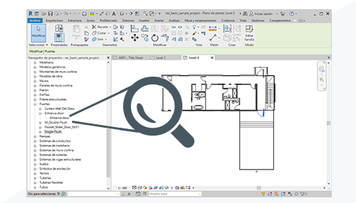 Seleccione elementos en el modelo y haga clic con el botón derecho para localizar el elemento en el Navegador de proyectos. Sin seleccionar nada, la vista o el plano activos se encuentran en el Navegador de proyectos.