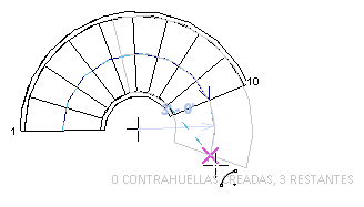 4. Mueva el cursor en sentido horario o antihorario para definir el sentido de giro, y designe con el ratón el punto final y el número total de contrahuellas.