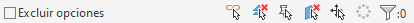 Anule la selección de las herramientas Excluir opciones o Sólo activas para seleccionar explícitamente elementos en las opciones de diseño o el modelo base.