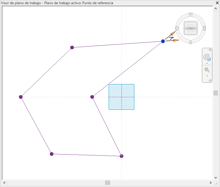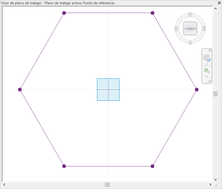 El Visor de plano de trabajo está disponible en todas las vistas de modelo en el entorno del proyecto. La orientación por defecto es el plano de trabajo activo de la última vista activa.