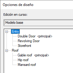 Al crear un conjunto de opciones de diseño, Revit crea automáticamente una opción primaria. Utilice este procedimiento para añadir una o más opciones de diseño secundarias en el conjunto.